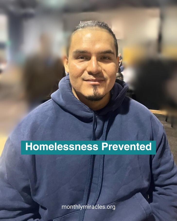 Through your generosity, Monthly Miracles stepped in to cover the rent he needed during this difficult season.